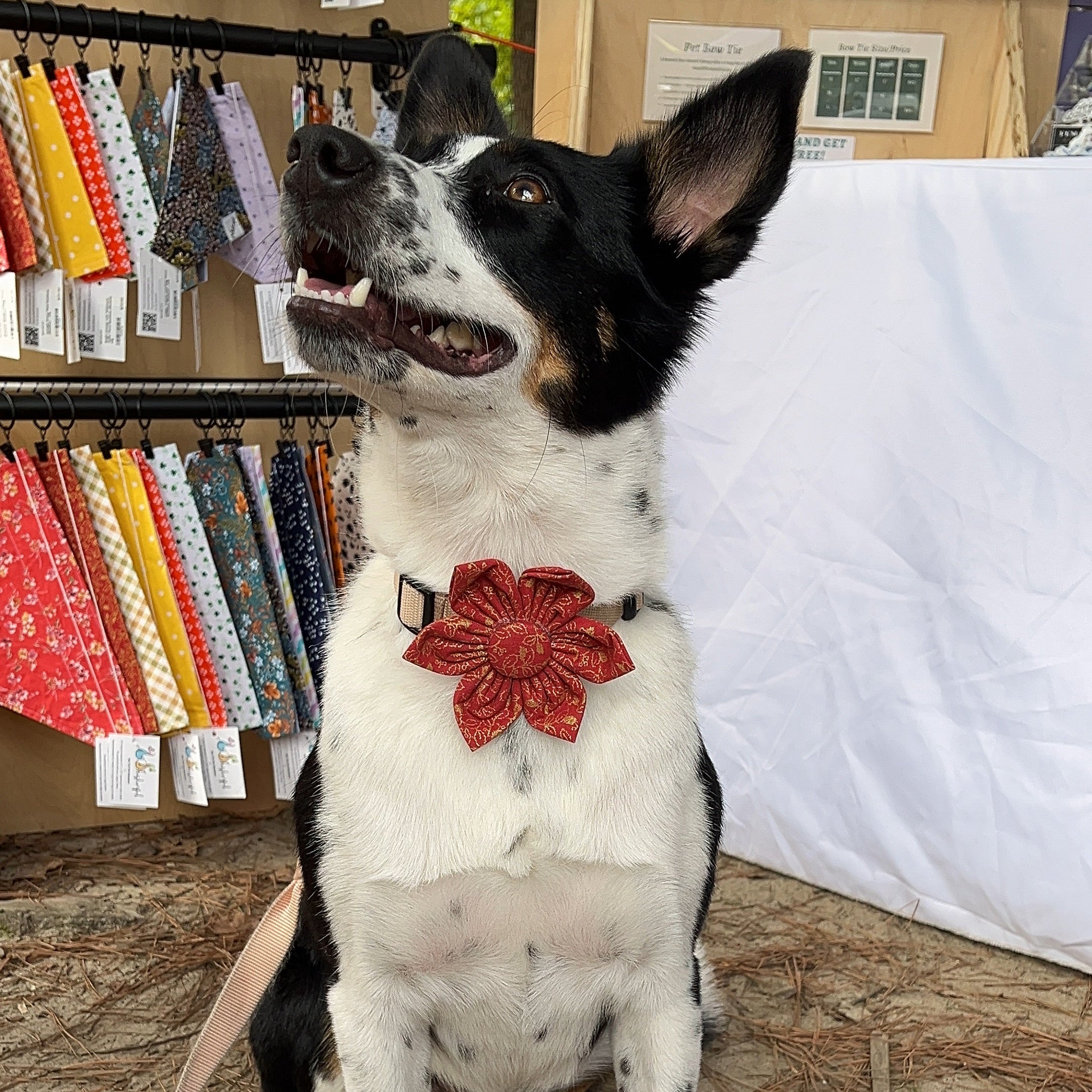 Shop our most loved handmade pet accessories, including dog bow ties, collars, florals, and bandanas. Thoughtfully crafted in small batches with limited fabrics for comfort, durability, and timeless style.