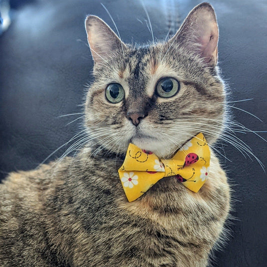 Yellow Lady Bug & Daisy Flower Bow Tie